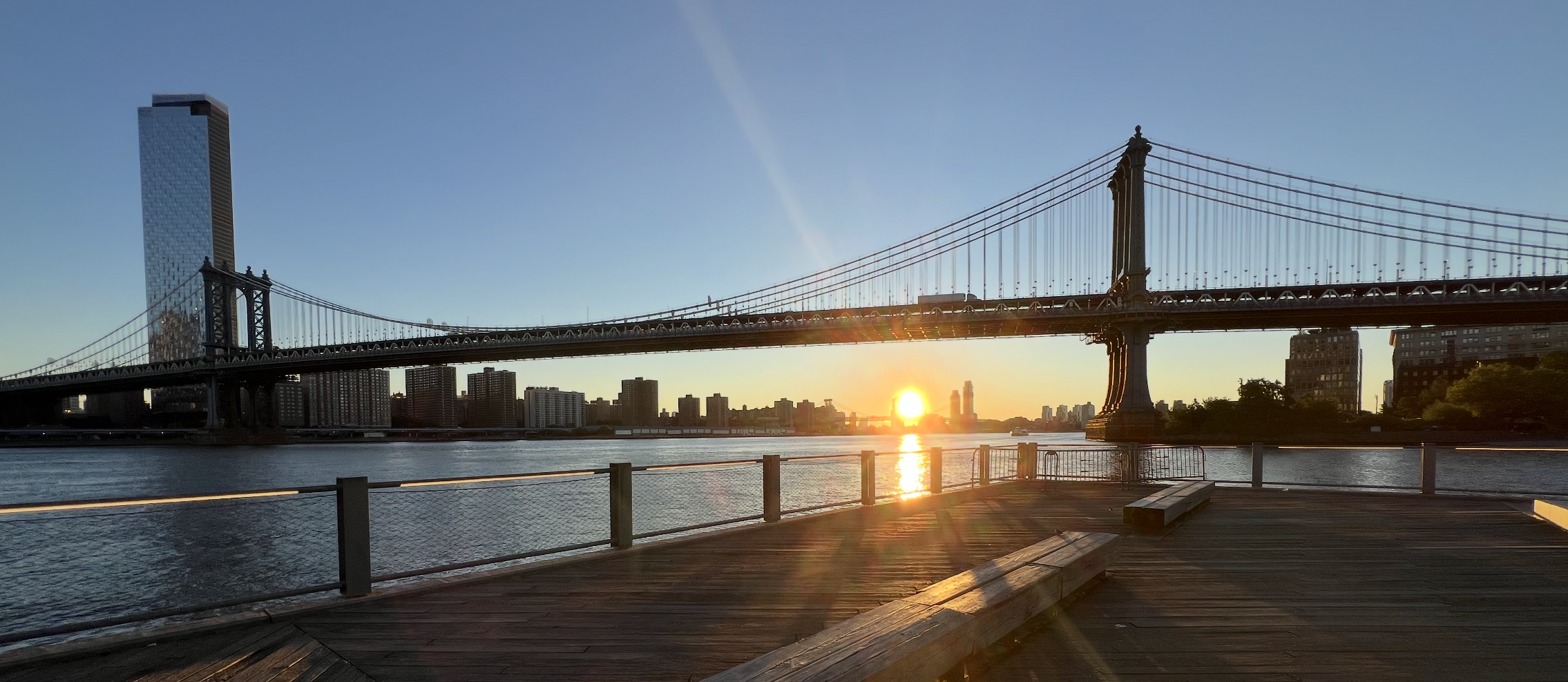 A photo I took of the sunrise behind the Manhattan Bridge.